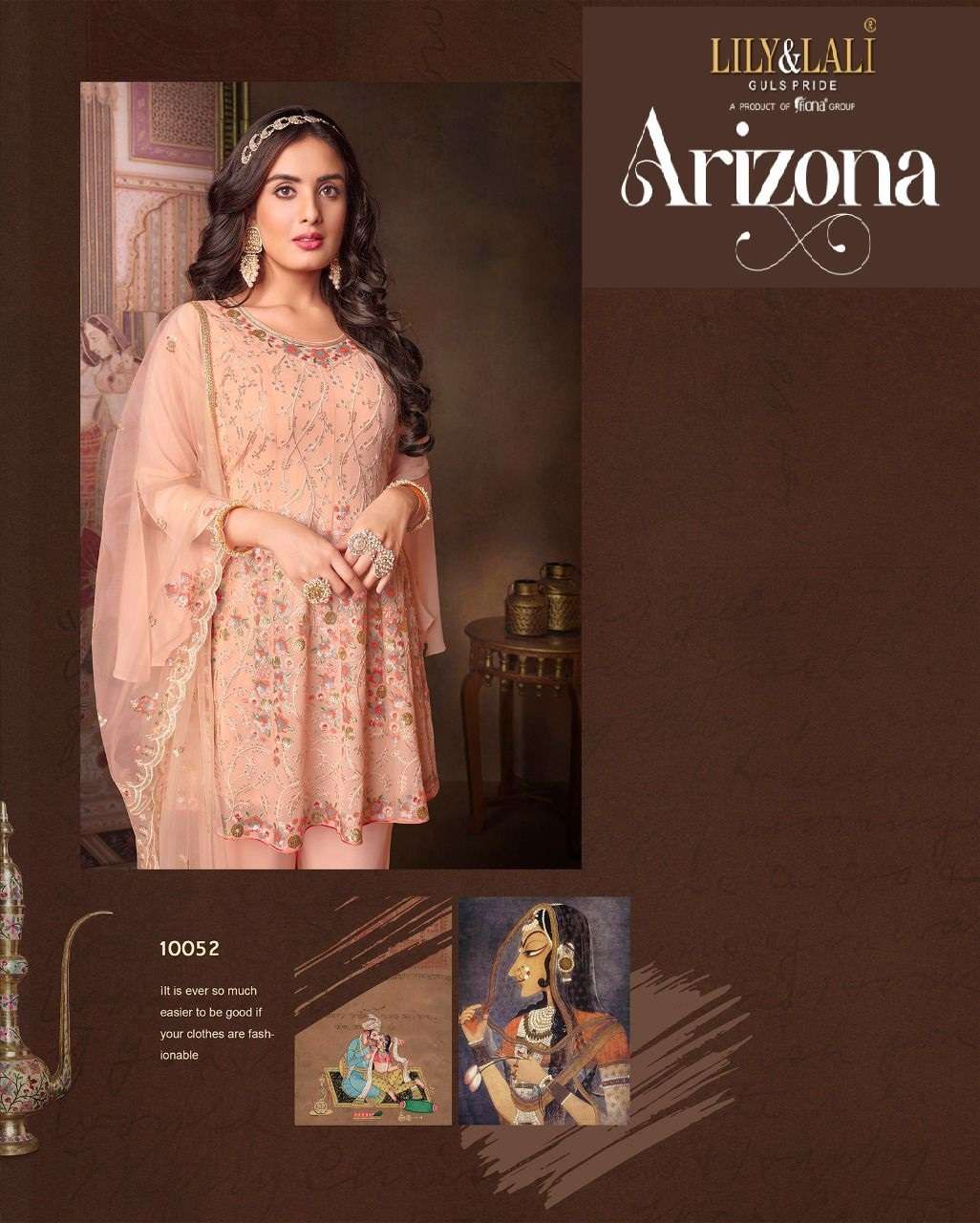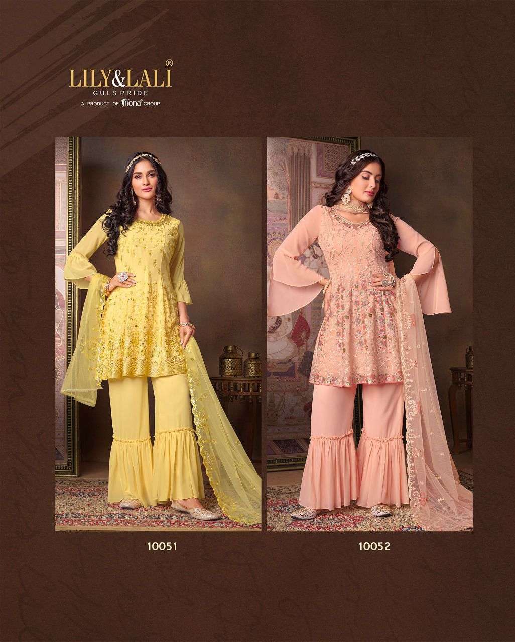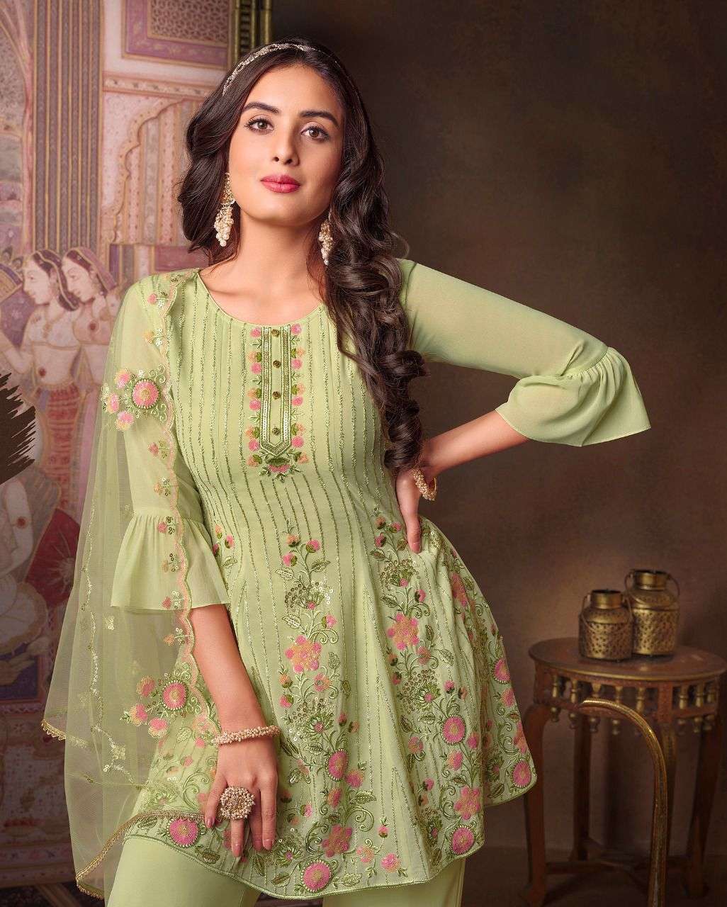 ARIZONA BY LILY & LALI BRAND SEQUENCE WORK ON HEAVY GEORGETTE SHORT KURTI WITH INNER AND GEORGETTE SHARARA WITH CUTWORK SEQUENCE EMBROIDERY ON HEAVY NET DUPATTA WHOLESALER AND DEALER