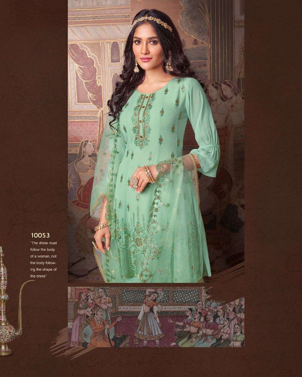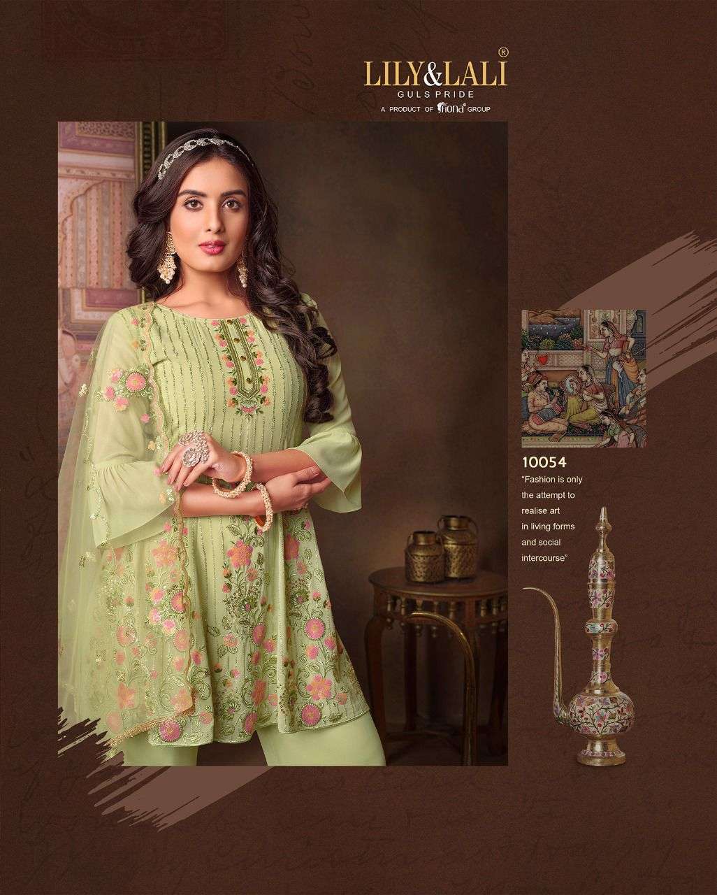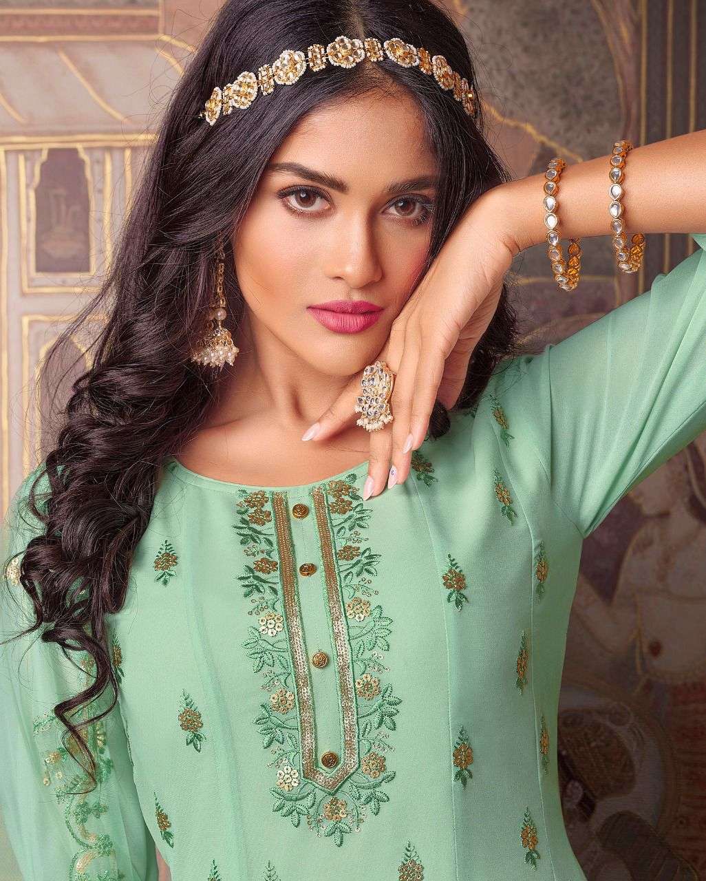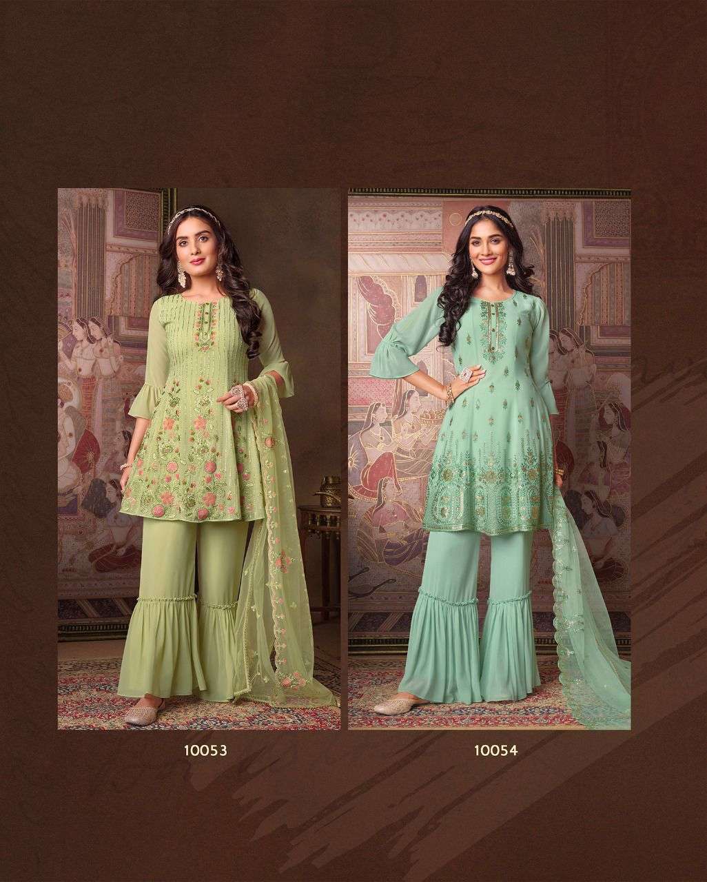 ARIZONA BY LILY & LALI BRAND SEQUENCE WORK ON HEAVY GEORGETTE SHORT KURTI WITH INNER AND GEORGETTE SHARARA WITH CUTWORK SEQUENCE EMBROIDERY ON HEAVY NET DUPATTA WHOLESALER AND DEALER