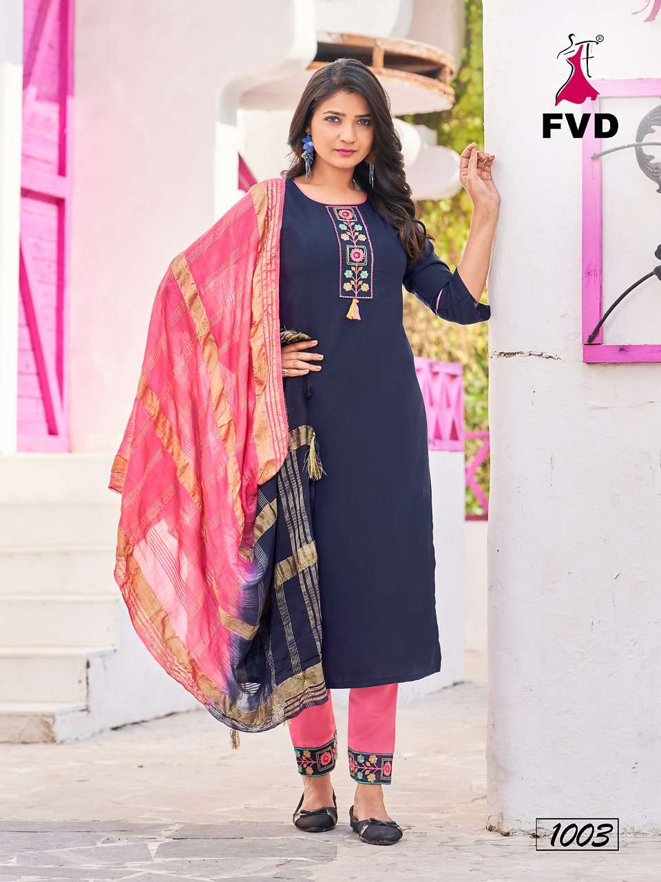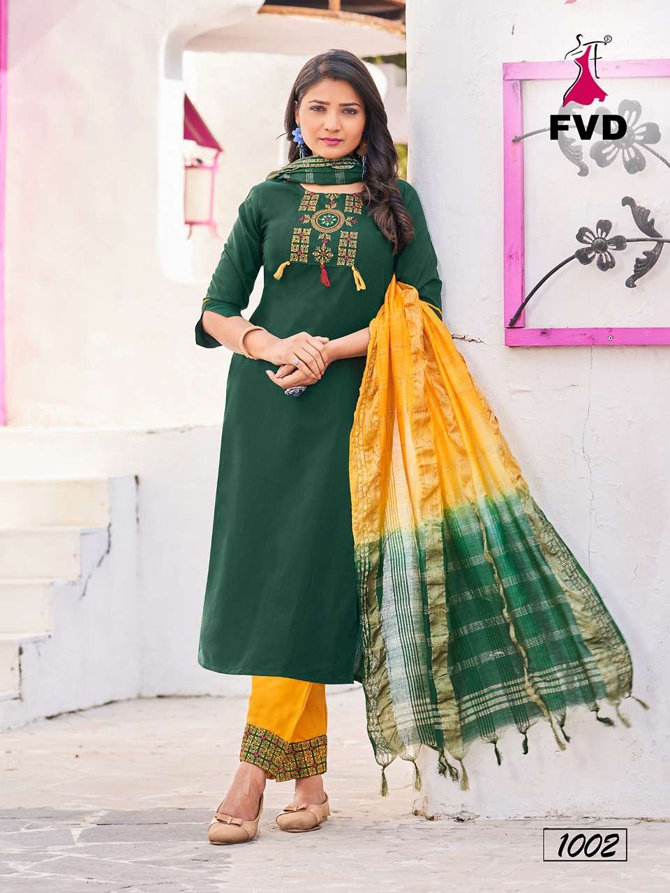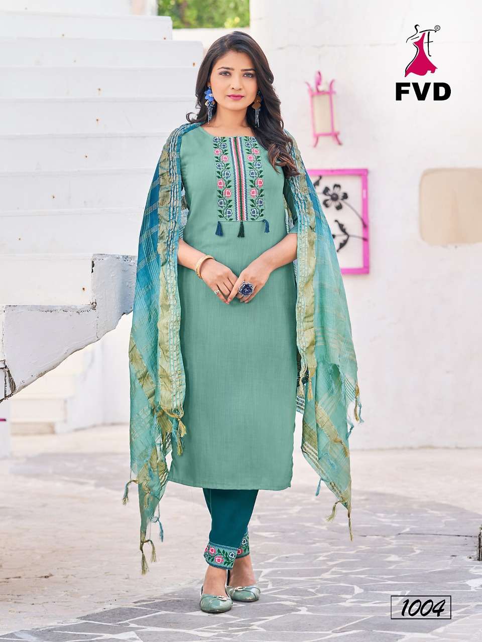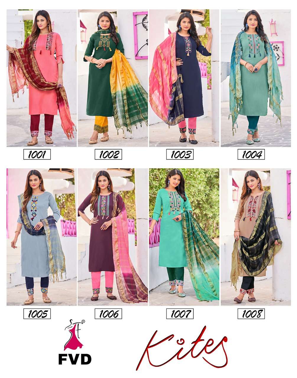 Buy Online KITES VOL 3 BY FVD BRAND - FANCY VISCOS TESLA RAYON STYLIST NACK EMBROIDERY WORK KURTI WITH COTTON FLEX EMBROIDERY WORK PANT AND CHANDERI CORONA DUPATTA - WHOLESALER AND DEALER 8 Pcs of Full Catalogue at Wholesale Price. Looking for KITES VOL 3 BY FVD BRAND - FANCY VISCOS TESLA RAYON STYLIST NACK EMBROIDERY WORK KURTI WITH COTTON FLEX EMBROIDERY WORK PANT AND CHANDERI CORONA DUPATTA - WHOLESALER AND DEALER Full Catalouge at Best Price? Buy Now KITES VOL 3 BY FVD BRAND - FANCY VISCOS TESLA RAYON STYLIST NACK EMBROIDERY WORK KURTI WITH COTTON FLEX EMBROIDERY WORK PANT AND CHANDERI CORONA DUPATTA - WHOLESALER AND DEALER at Wholesale Rate of Rs 6392 with Total 8 Pcs from authroized dealer and supplier of FVD Brand. Cost of Each piece is just only Rs 799 which is very low and affordable price to resale the product in your retail store S3Forever is Surat based Wholesale Supplier & Dealer of FVD Brand. Click on Brand name to Know more about FVD Brand's products.Call or Whatsapp on +91-7778818080 for booking or enquiry