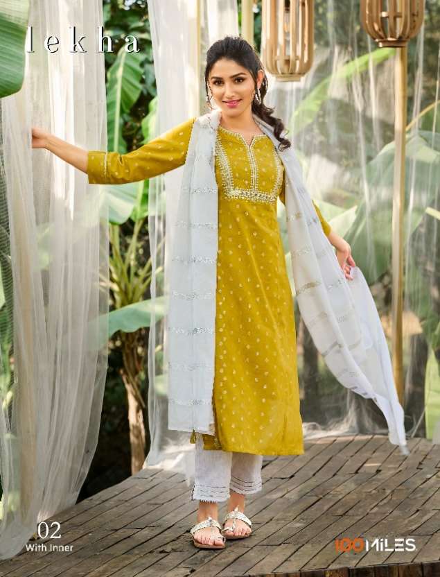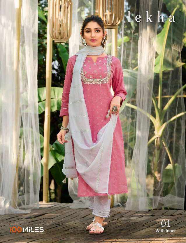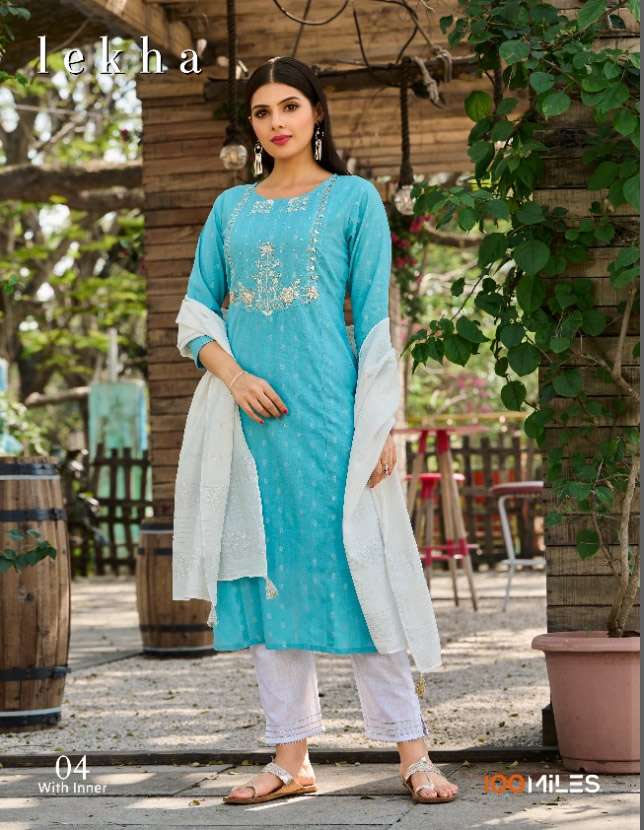 Buy Online LEKHA BY 100MILES BRAND PREMIUM SILVER JARI BUTTI COTTON HEAVY HAND WORK EMBROIDERED KURTI WITH FANCY RAPIER DUPATTA AND PANTS WITH LACE DETAILING BY S3FOREVER GUJARAT WHOLESALER AND DEALER 4 Pcs of Full Catalogue at Wholesale Price. Looking for LEKHA BY 100MILES BRAND PREMIUM SILVER JARI BUTTI COTTON HEAVY HAND WORK EMBROIDERED KURTI WITH FANCY RAPIER DUPATTA AND PANTS WITH LACE DETAILING BY S3FOREVER GUJARAT WHOLESALER AND DEALER Full Catalouge at Best Price? Buy Now LEKHA BY 100MILES BRAND PREMIUM SILVER JARI BUTTI COTTON HEAVY HAND WORK EMBROIDERED KURTI WITH FANCY RAPIER DUPATTA AND PANTS WITH LACE DETAILING BY S3FOREVER GUJARAT WHOLESALER AND DEALER at Wholesale Rate of Rs 3780 with Total 4 Pcs from authroized dealer and supplier of 100MILES Brand. Cost of Each piece is just only Rs 945 which is very low and affordable price to resale the product in your retail store S3Forever is Surat based Wholesale Supplier & Dealer of 100MILES Brand. Click on Brand name to Know more about 100MILES Brand's products.Call or Whatsapp on +91-7778818080 for booking or enquiry
