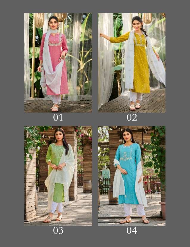 LEKHA BY 100MILES BRAND PREMIUM SILVER JARI BUTTI COTTON HEAVY HAND WORK EMBROIDERED KURTI WITH FANCY RAPIER DUPATTA AND PANTS WITH LACE DETAILING BY S3FOREVER GUJARAT WHOLESALER AND DEALER
