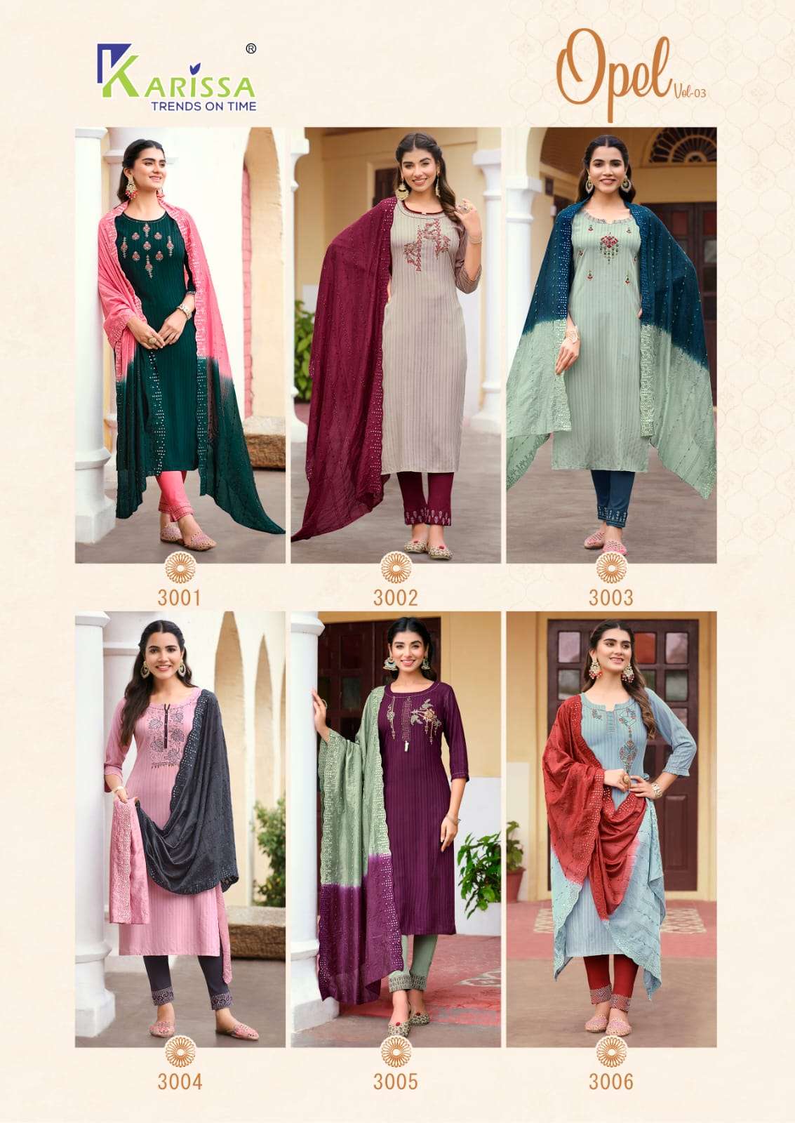 Buy Online OPEL VOL 3 LIVA TAG VISCOSE RAYON WEAVING THREAD AND HANDWORK KURTI WITH PANT AND NYLON VISCOSE SEQUENCE DUPATTA BY KARISSA BRAND WHOLESALER AND DEALER 6 Pcs of Full Catalogue at Wholesale Price. Looking for OPEL VOL 3 LIVA TAG VISCOSE RAYON WEAVING THREAD AND HANDWORK KURTI WITH PANT AND NYLON VISCOSE SEQUENCE DUPATTA BY KARISSA BRAND WHOLESALER AND DEALER Full Catalouge at Best Price? Buy Now OPEL VOL 3 LIVA TAG VISCOSE RAYON WEAVING THREAD AND HANDWORK KURTI WITH PANT AND NYLON VISCOSE SEQUENCE DUPATTA BY KARISSA BRAND WHOLESALER AND DEALER at Wholesale Rate of Rs 6270 with Total 6 Pcs from authroized dealer and supplier of KARISSA Brand. Cost of Each piece is just only Rs 1045 which is very low and affordable price to resale the product in your retail store S3Forever is Surat based Wholesale Supplier & Dealer of KARISSA Brand. Click on Brand name to Know more about KARISSA Brand's products.Call or Whatsapp on +91-7778818080 for booking or enquiry