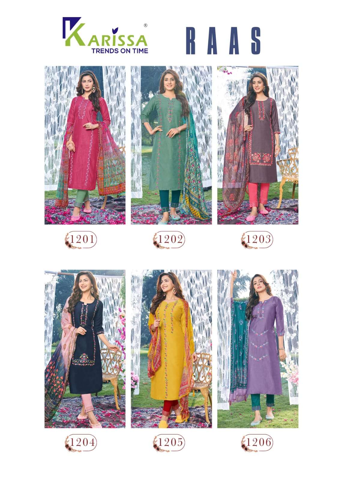Buy Online RAAS BY KARISSA BRAND -TRENDY VISCOSE CHINON WITH PURE COTTON MALL INNER THREAD AND HAND WORK KURTI WITH LIVA TAG RAYON SLUB LYCRA WORK PANT AND FANCY FABRIC DIGITAL PRINTED DUPATTA - WHOLESALER AND DEALER 6 Pcs of Full Catalogue at Wholesale Price. Looking for RAAS BY KARISSA BRAND -TRENDY VISCOSE CHINON WITH PURE COTTON MALL INNER THREAD AND HAND WORK KURTI WITH LIVA TAG RAYON SLUB LYCRA WORK PANT AND FANCY FABRIC DIGITAL PRINTED DUPATTA - WHOLESALER AND DEALER Full Catalouge at Best Price? Buy Now RAAS BY KARISSA BRAND -TRENDY VISCOSE CHINON WITH PURE COTTON MALL INNER THREAD AND HAND WORK KURTI WITH LIVA TAG RAYON SLUB LYCRA WORK PANT AND FANCY FABRIC DIGITAL PRINTED DUPATTA - WHOLESALER AND DEALER at Wholesale Rate of Rs 6570 with Total 6 Pcs from authroized dealer and supplier of KARISSA Brand. Cost of Each piece is just only Rs 1095 which is very low and affordable price to resale the product in your retail store S3Forever is Surat based Wholesale Supplier & Dealer of KARISSA Brand. Click on Brand name to Know more about KARISSA Brand's products.Call or Whatsapp on +91-7778818080 for booking or enquiry