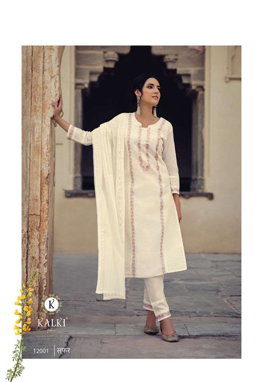 Buy Online SAFAR BY KALKI FASHION BRAND COTTON FANCY THERD WITH HANDWORK AND ACCESSORY WORK KURTI WITH COTTON PANT AND MIRROR WORK DUPATTA WHOLESALER AND DEALER 6 Pcs of Full Catalogue at Wholesale Price. Looking for SAFAR BY KALKI FASHION BRAND COTTON FANCY THERD WITH HANDWORK AND ACCESSORY WORK KURTI WITH COTTON PANT AND MIRROR WORK DUPATTA WHOLESALER AND DEALER Full Catalouge at Best Price? Buy Now SAFAR BY KALKI FASHION BRAND COTTON FANCY THERD WITH HANDWORK AND ACCESSORY WORK KURTI WITH COTTON PANT AND MIRROR WORK DUPATTA WHOLESALER AND DEALER at Wholesale Rate of Rs 7794 with Total 6 Pcs from authroized dealer and supplier of KALKI FASHION Brand. Cost of Each piece is just only Rs 1299 which is very low and affordable price to resale the product in your retail store S3Forever is Surat based Wholesale Supplier & Dealer of KALKI FASHION Brand. Click on Brand name to Know more about KALKI FASHION Brand's products.Call or Whatsapp on +91-7778818080 for booking or enquiry
