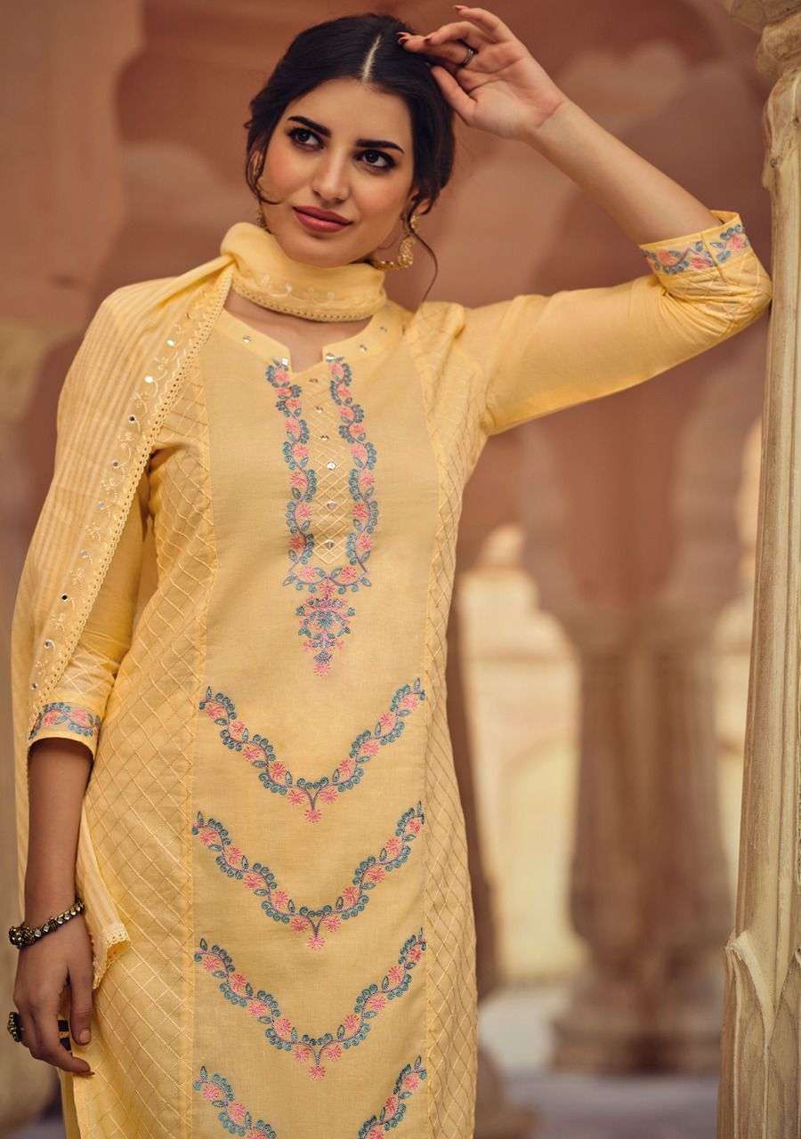 SAFAR BY KALKI FASHION BRAND COTTON FANCY THERD WITH HANDWORK AND ACCESSORY WORK KURTI WITH COTTON PANT AND MIRROR WORK DUPATTA WHOLESALER AND DEALER
