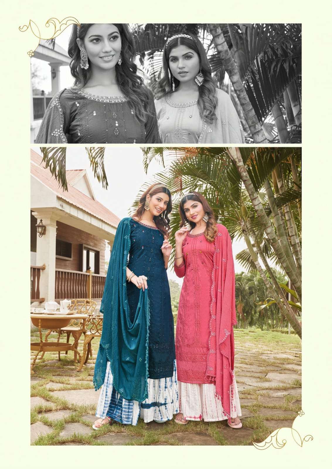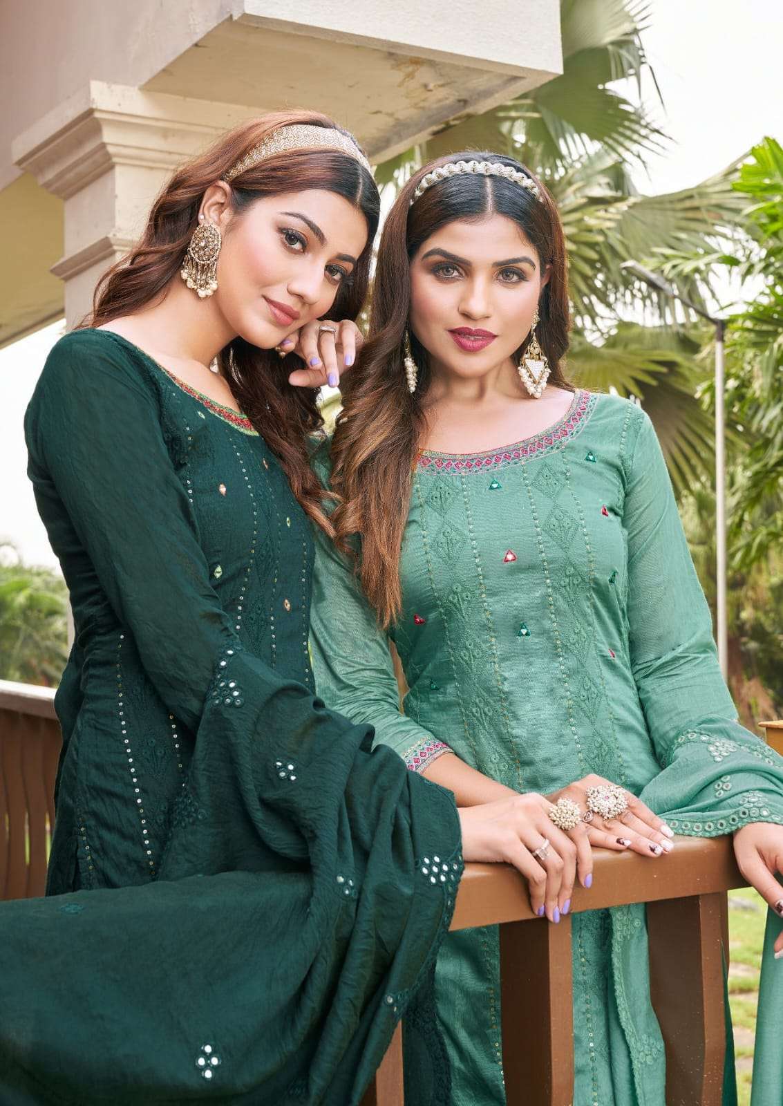 SHAGUN BY KARISSA BRAND PURE VISCOSE SILK LUCKNOWI AND THREAD WORK KURTI WITH COTTON MALL INNER WITH SHIBORI SHARARA AND MIRROR WORK DUPATTA WHOLESALER AND DEALER